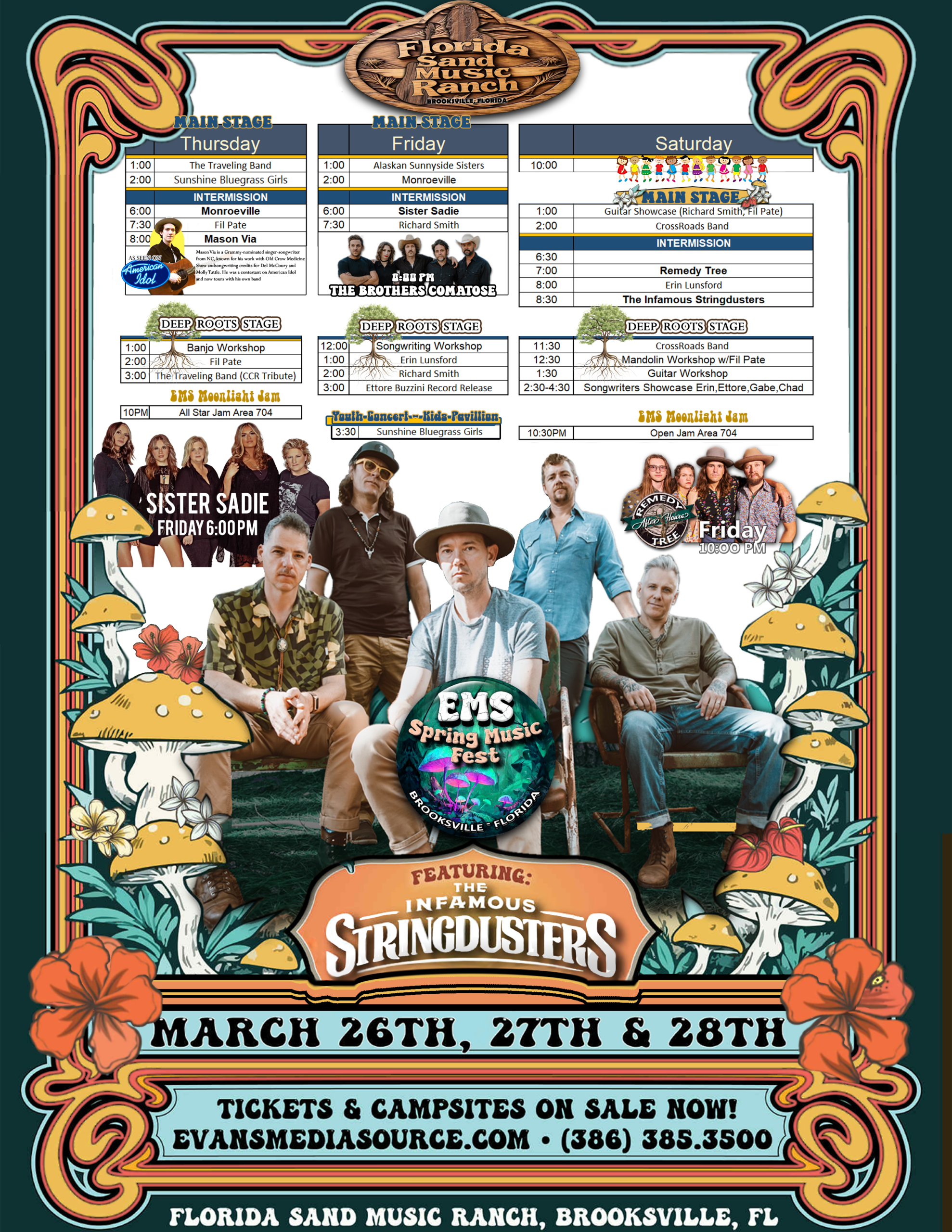 Florida Sand Music Ranch 85 Myers Rd, Brooksville, FL, United StatesClick here for Festival Schedule There is a non-refundable processing fee on all credit card purchases. There is a non-refundable deposit of $40 per electric campsite, $20 per primitive site,…
