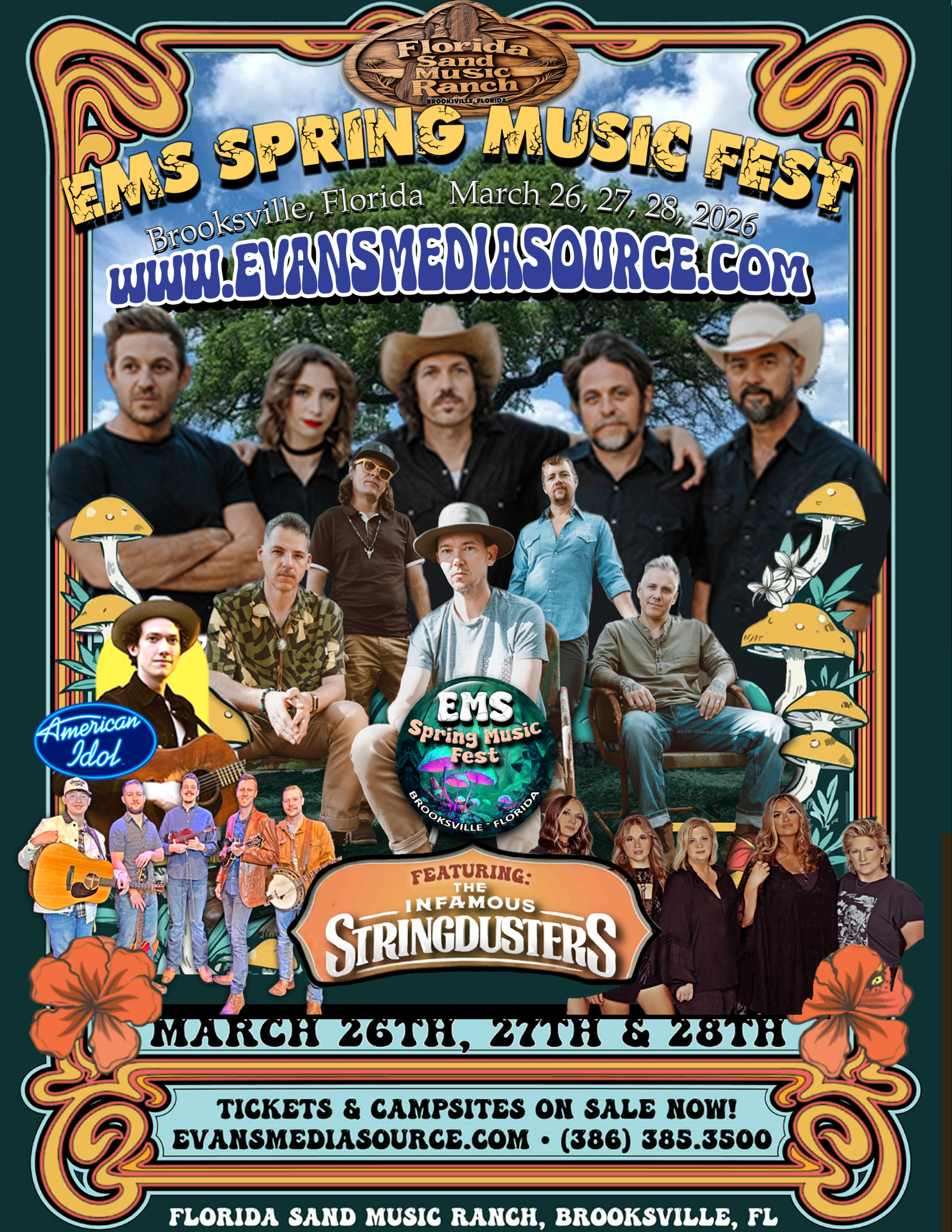 Florida Sand Music Ranch 85 Myers Rd, Brooksville, FL, United StatesClick here for Festival Schedule There is a non-refundable processing fee on all credit card purchases. There is a non-refundable deposit of $40 per electric campsite, $20 per primitive site,…